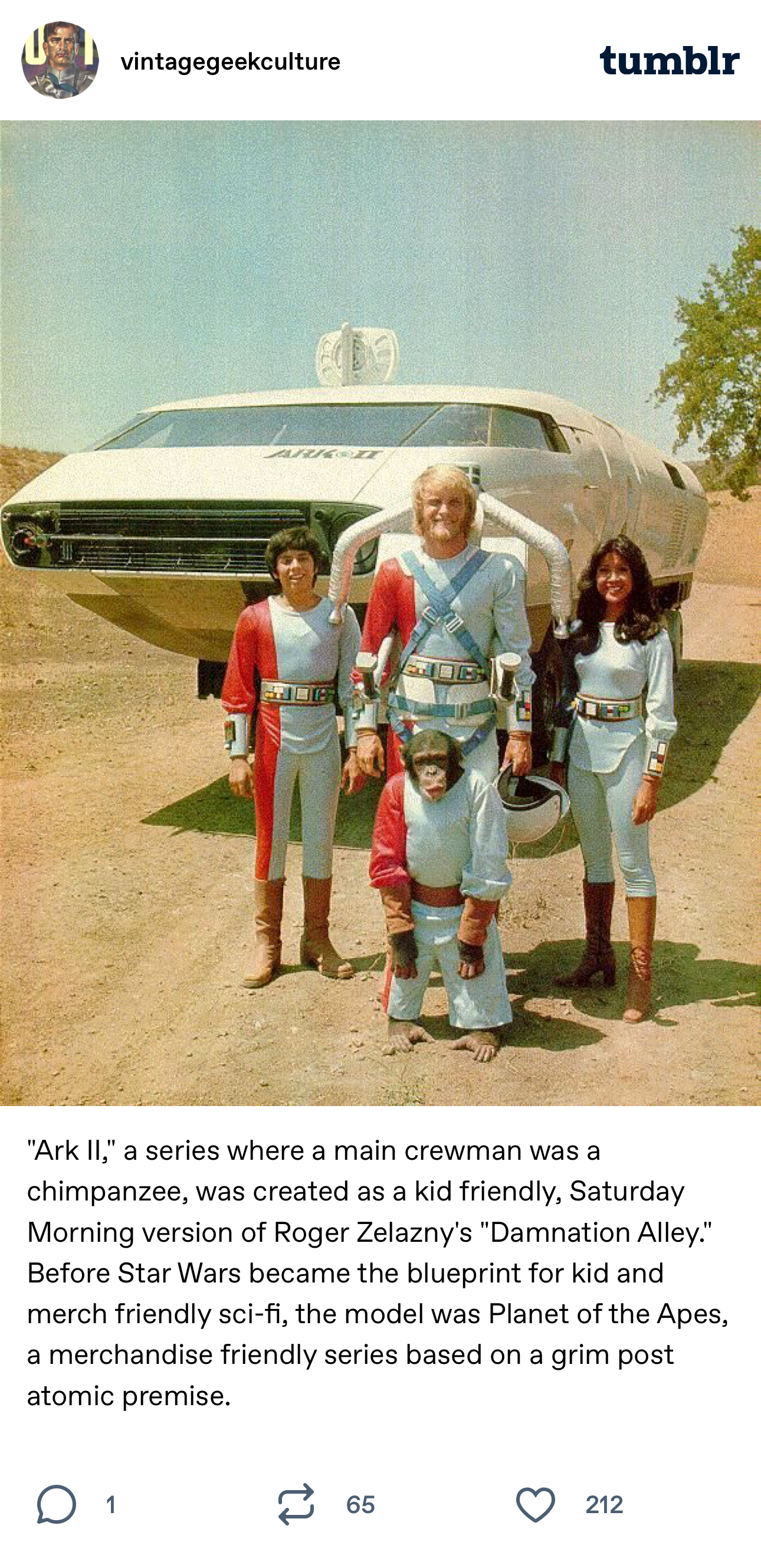 I thought this was a pretty cool show. I liked the idea of a sentient chimp as crew member, and I had a mad crush on the girl.