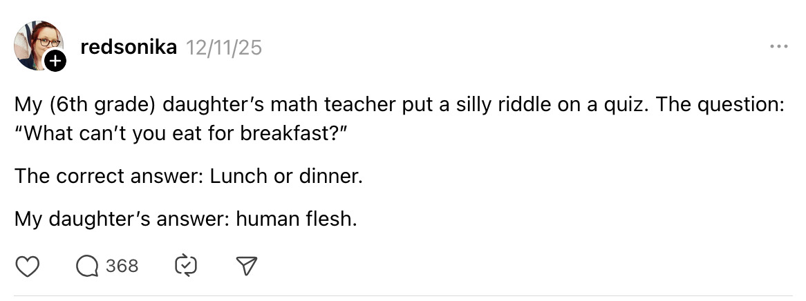 Mitchellaneous CXLIX. Eleven memes and a vintage magazine cover January 12, 2026 Mitch Wagner Boys of New York #866, March 19, 1892. published by Frank Tousey. Frank Reade Jr. and his New Electric Air-Ship, the Eclipse by Luis Senarens I have to look it up every time. Mitchellaneous (52)
