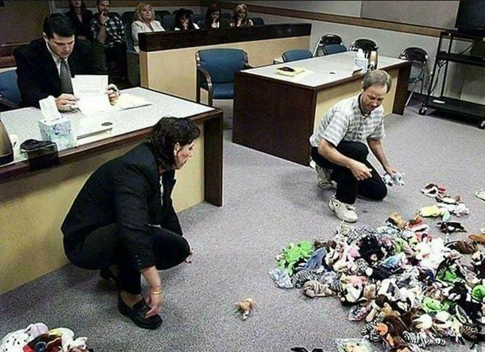 A divorcing couple dividing beanie babies in court, 1999