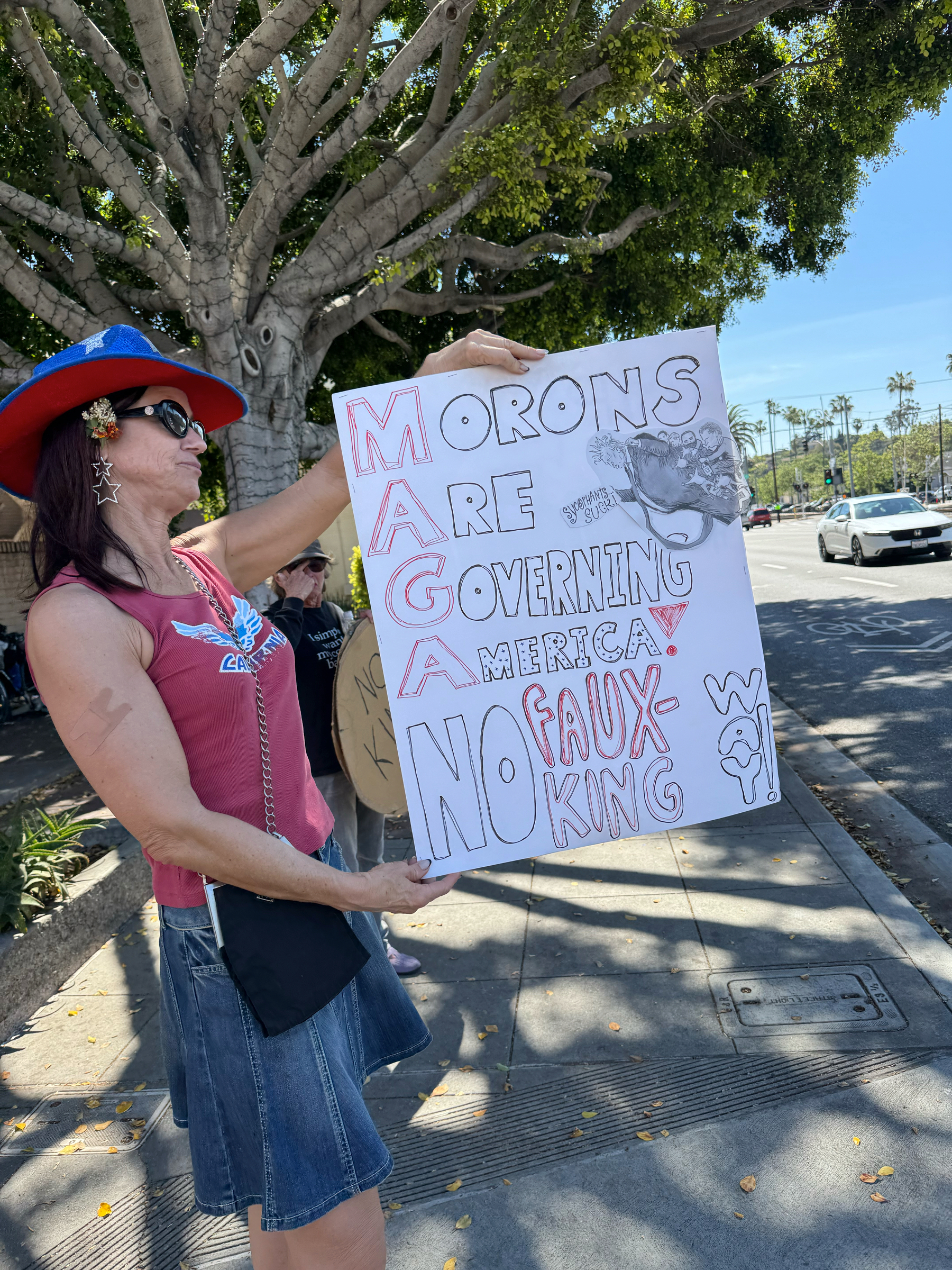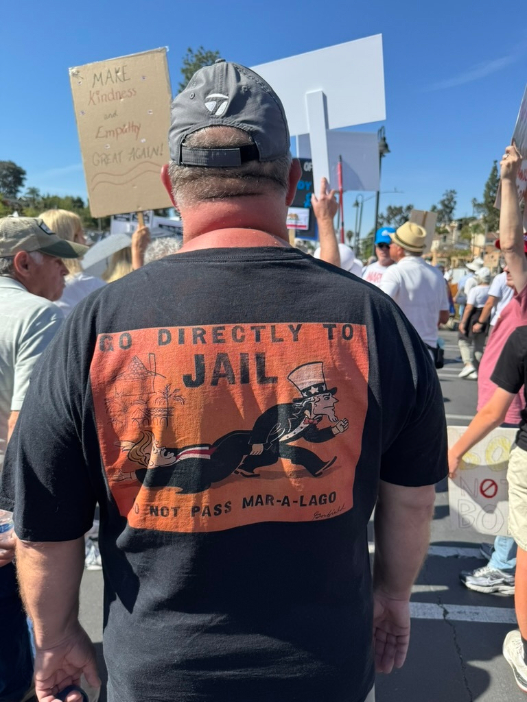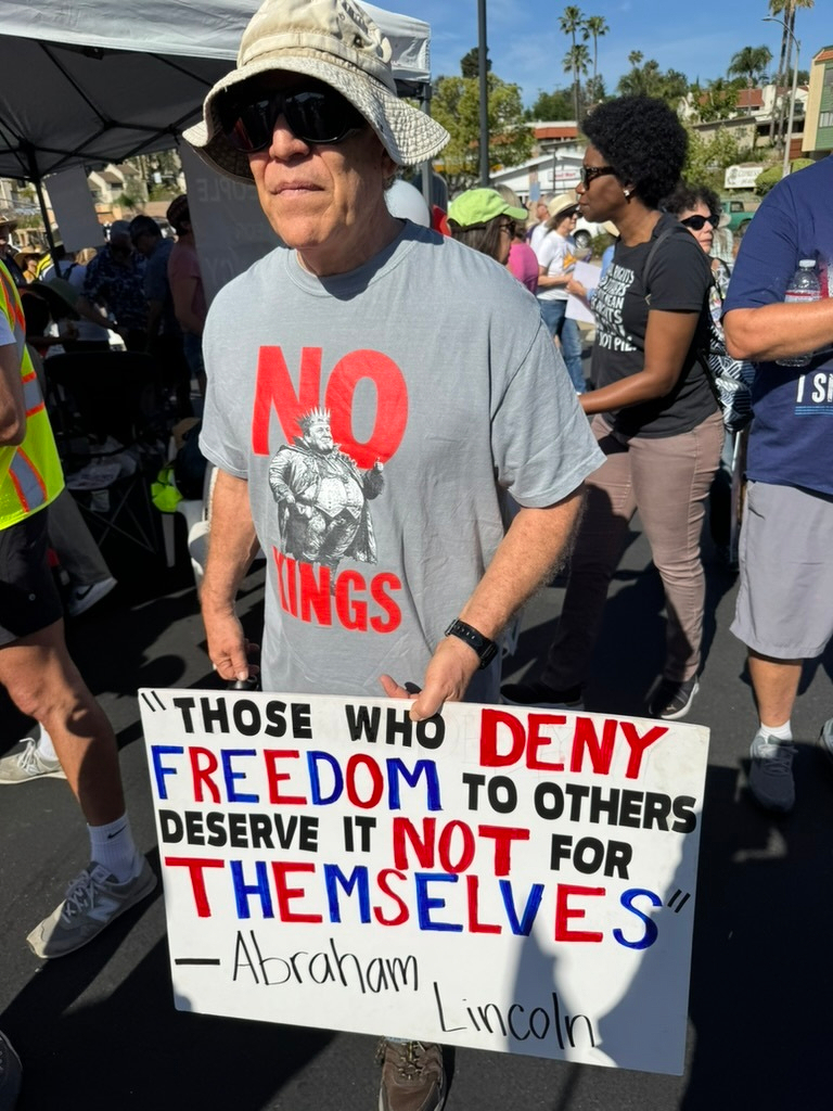 This was No Kings in La Mesa, California, a suburb of San Diego. We had about a thousand people by my guess, which is a lot, as the big San Diego event was nearby and easily accessible.